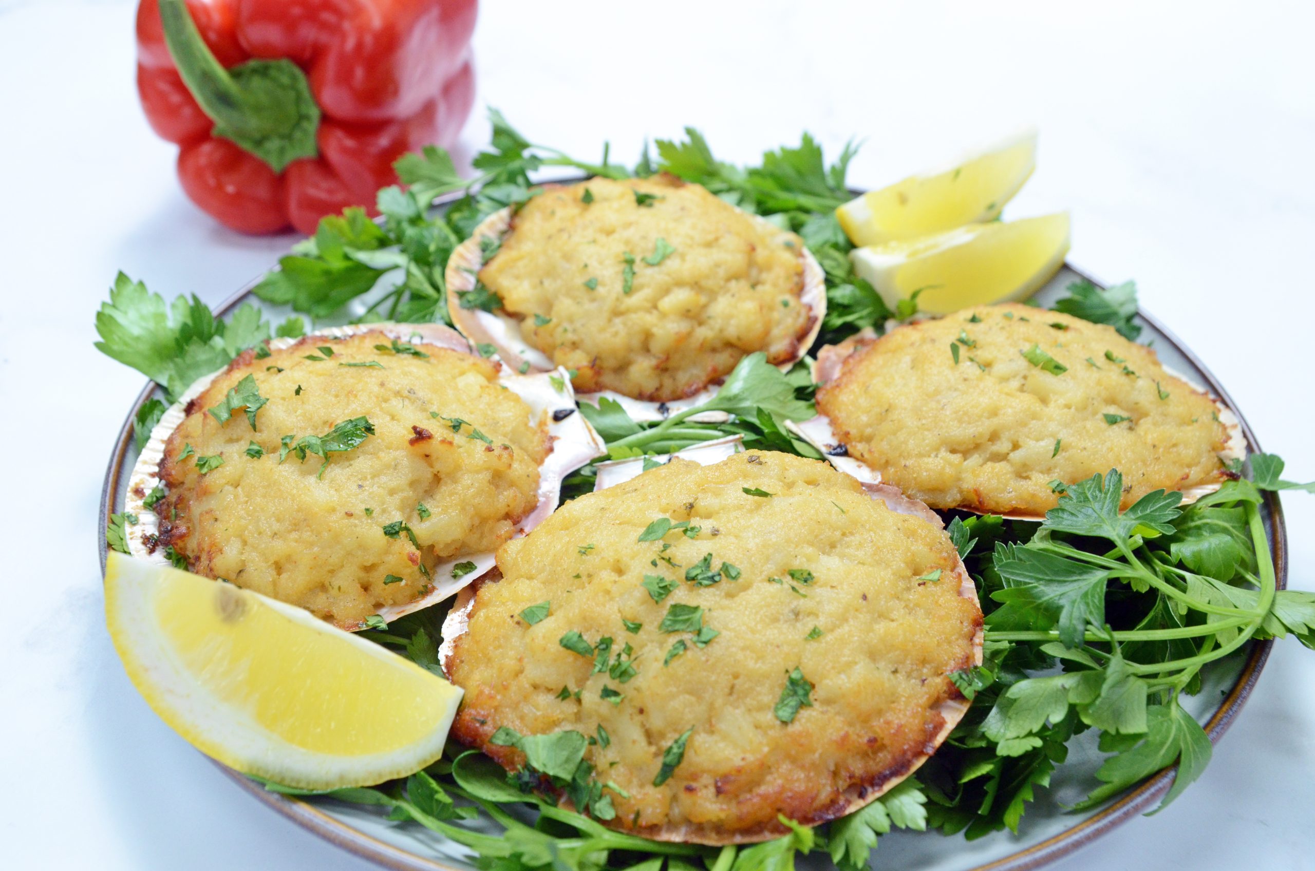 Tender scallops on the half shell, double stuffed with a savory blend of scallops, seasoned sauce, and light breading, baked to a golden crowd pleasing finish. Tray of 6 This is a Holiday Catering Specialty Item, Available Only December 21, 22,23, and 24 for Pick-Up.