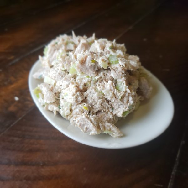 Tender roasted chicken, combined with creamy mayonnaise, crisp celery and onions and herbs for a simple, comforting dish. 1 QUART